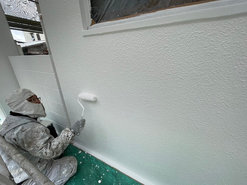 本日は、中塗り、上塗り作業を行いました! こちらは防水工事も受けているので